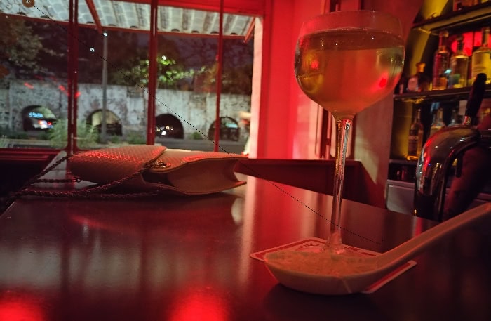This is a combo wine bar and cocktail bar, with delicious small plates influenced by the French roots of the owner — think roast beef toasts and pate. The space is unpretentious yet nice, cozy but not as dark and moody as some of the places on this list. There is always a good mix of foreigners and locals when I have been there.